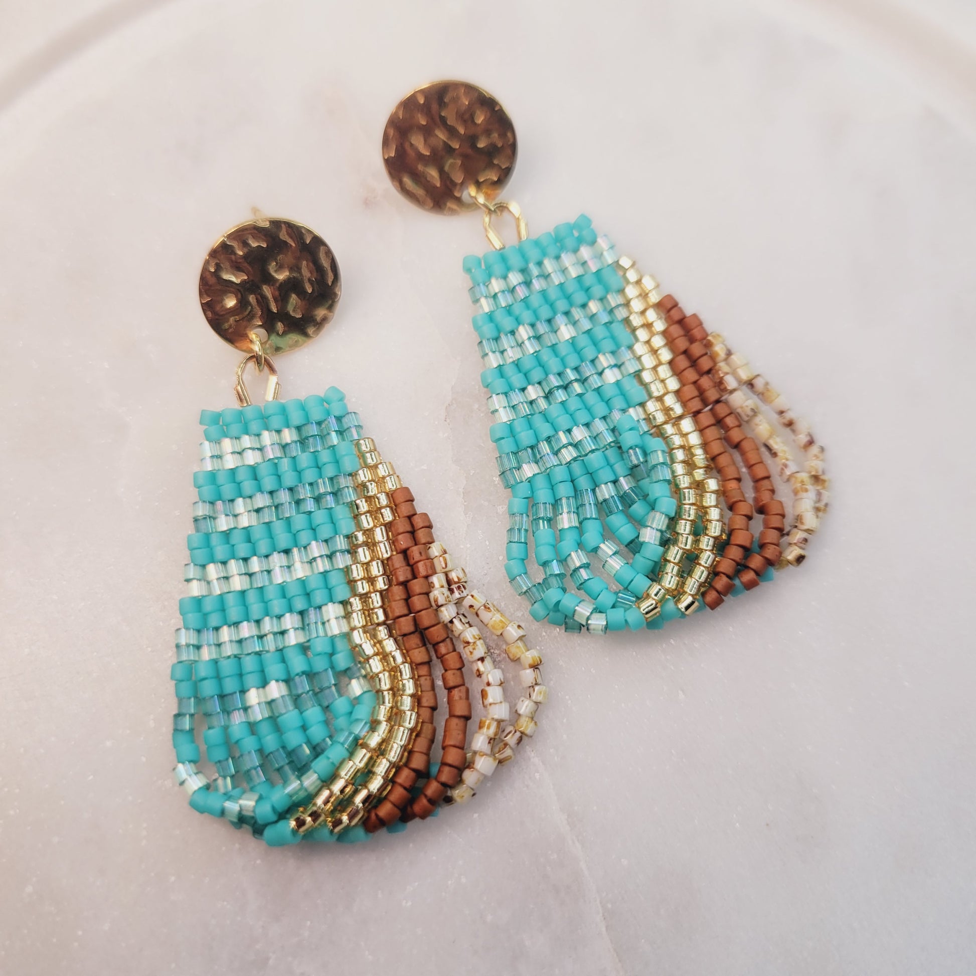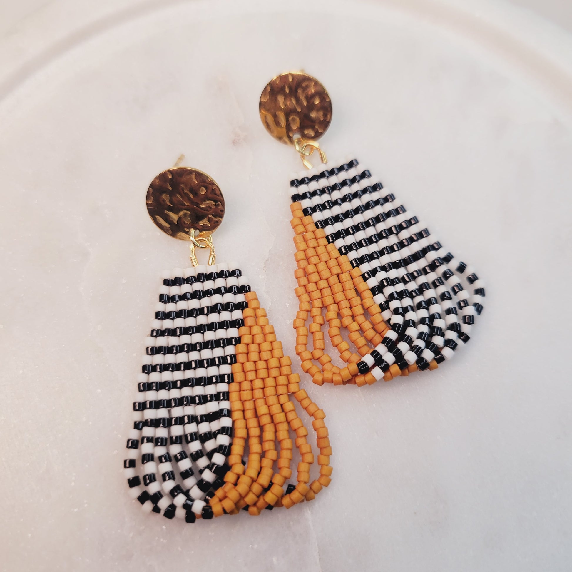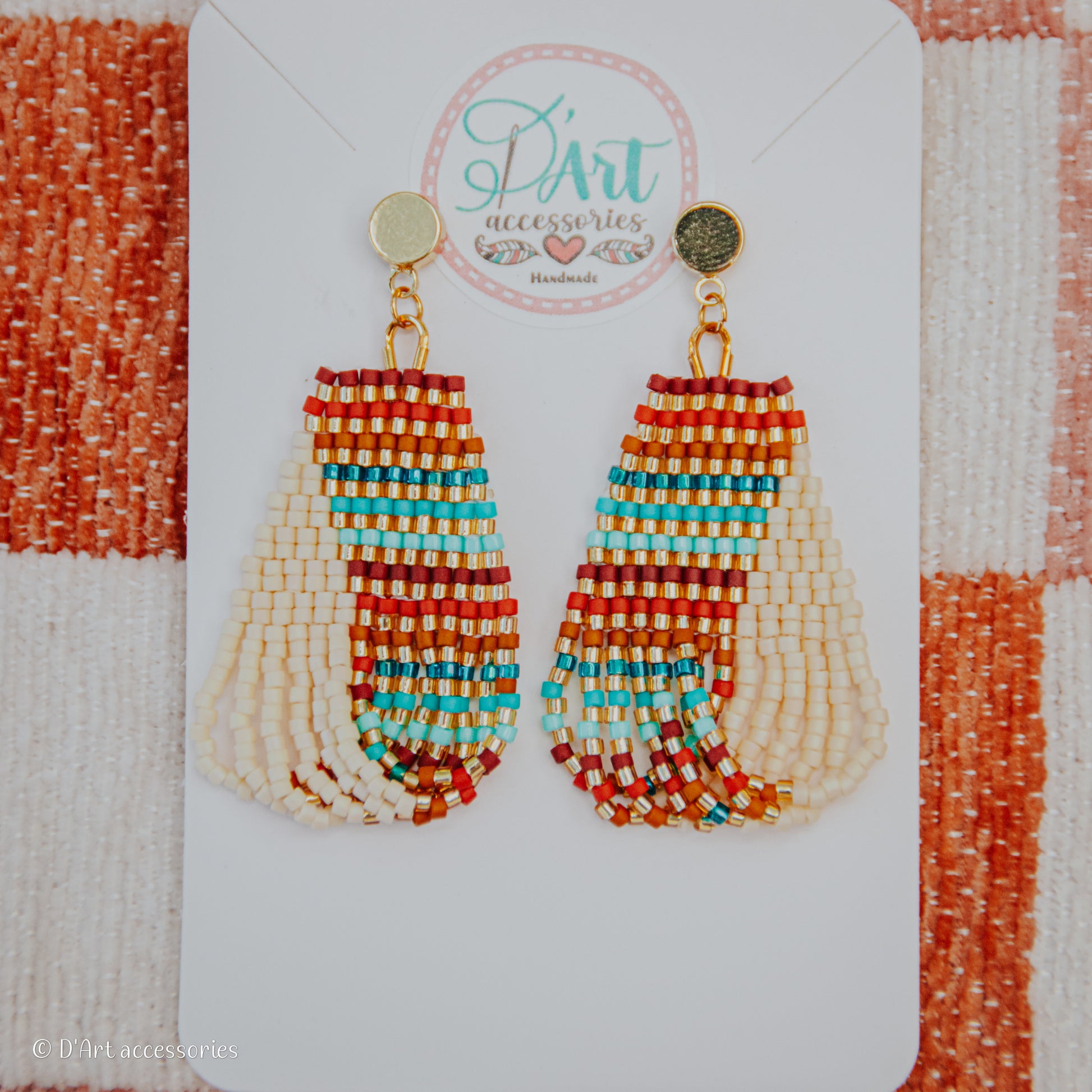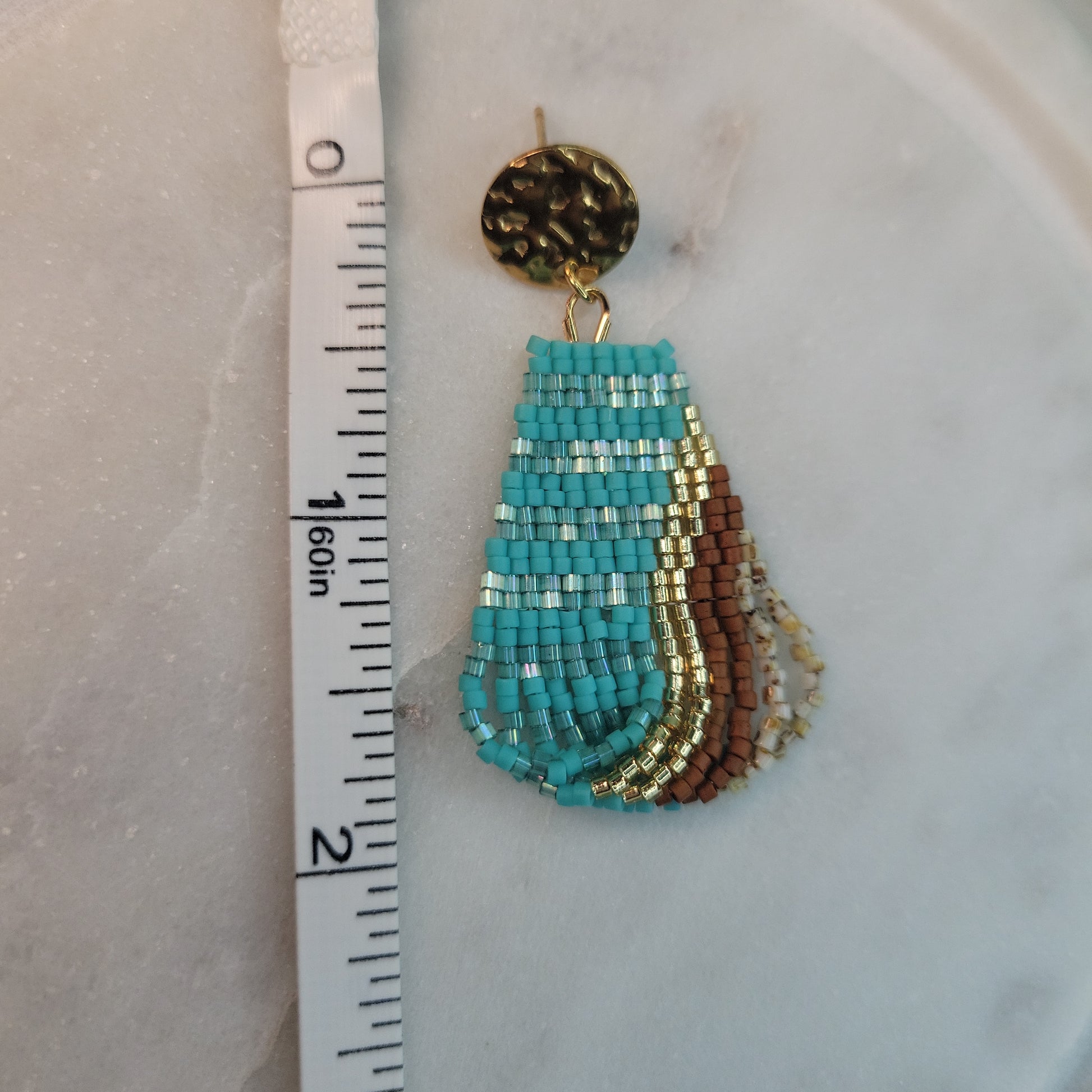 These Fan-tastic Tassel Earrings are handmade with Miyuki beads and feature a beautiful fan of eye-catching, trendy colors. Durable and lightweight, they make a perfect fashion statement.
