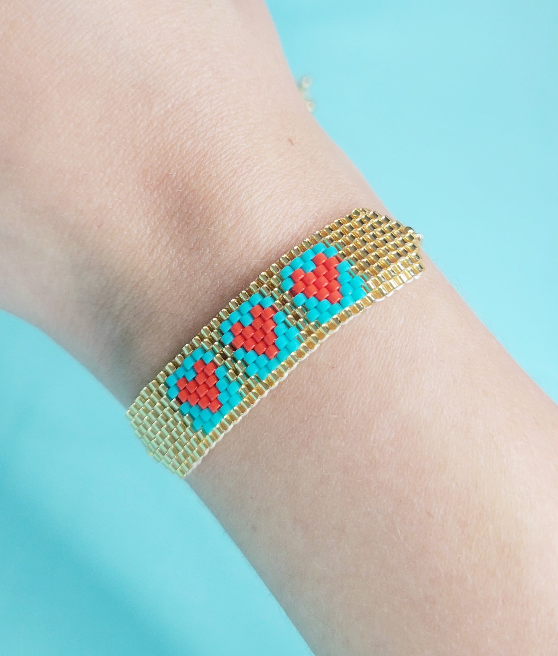 Heart bracelet woven in Peyote technique, fascinating colors that will highlight your look!