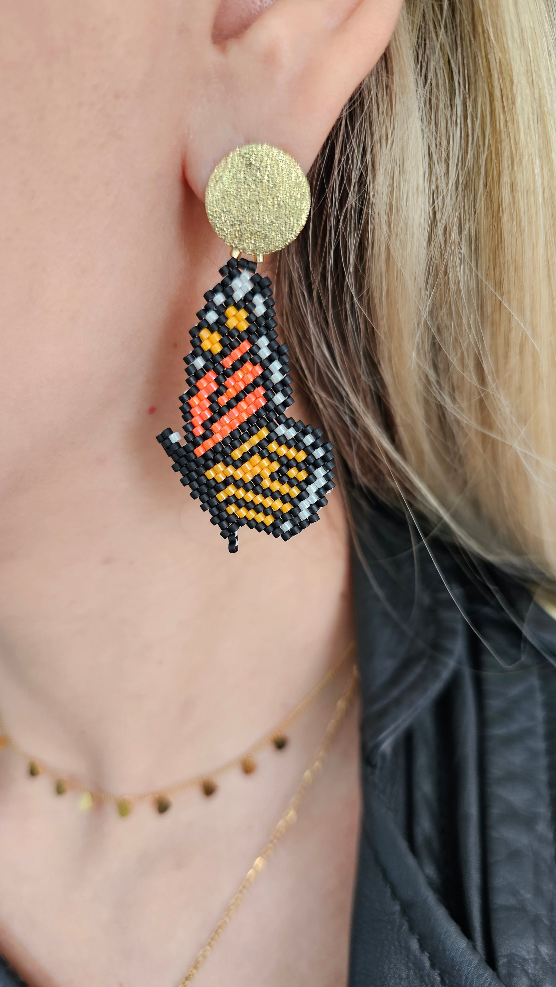 Monarch wings beaded earrings