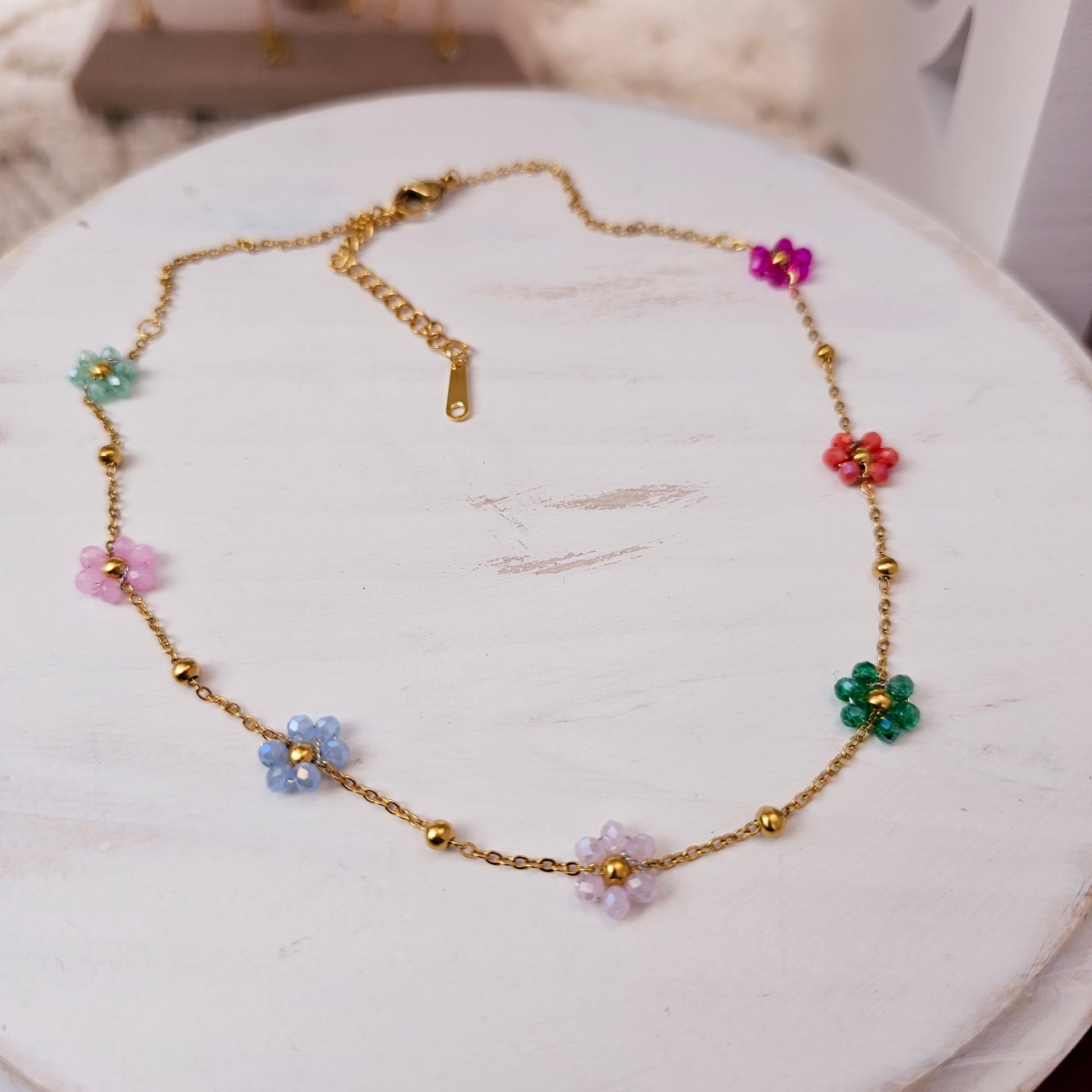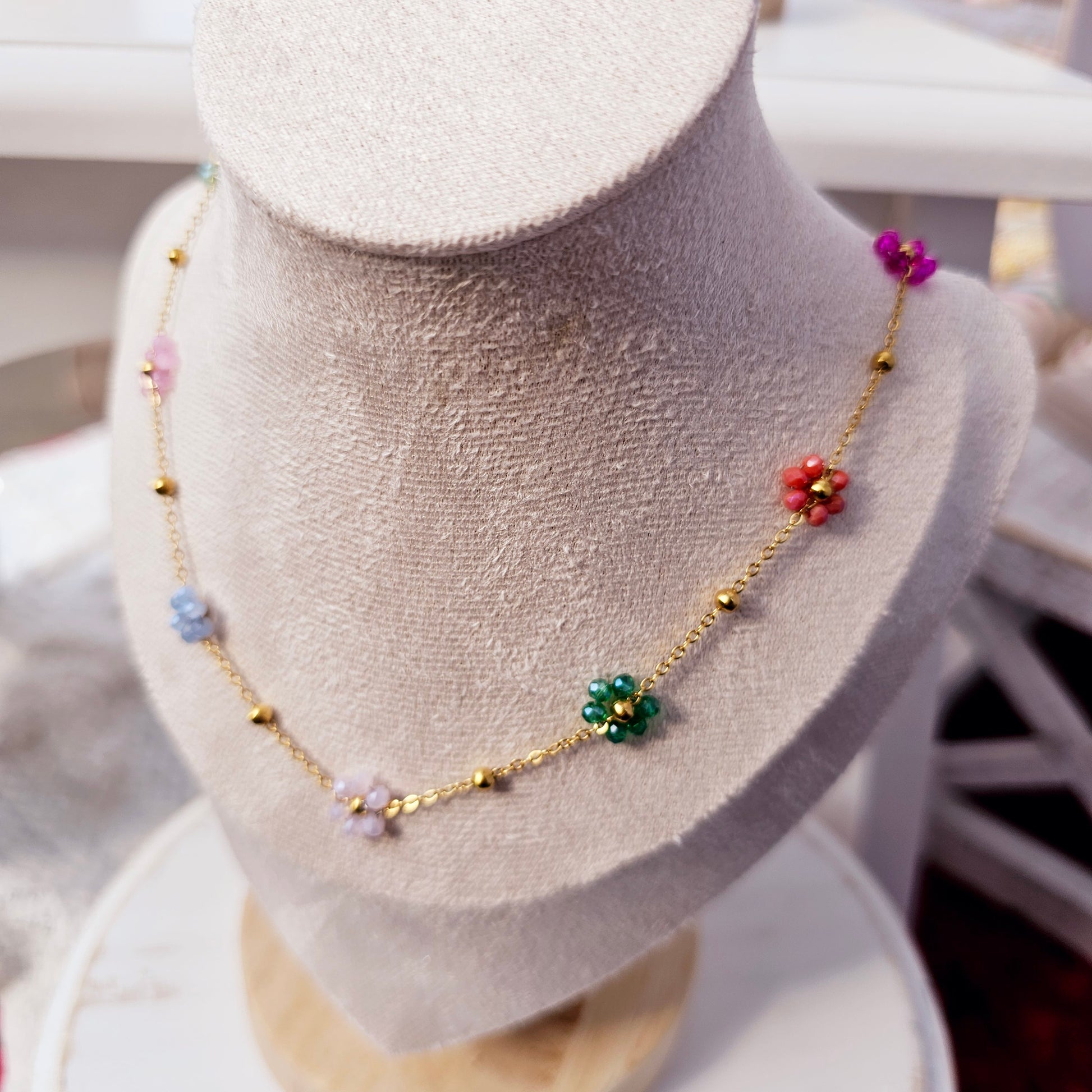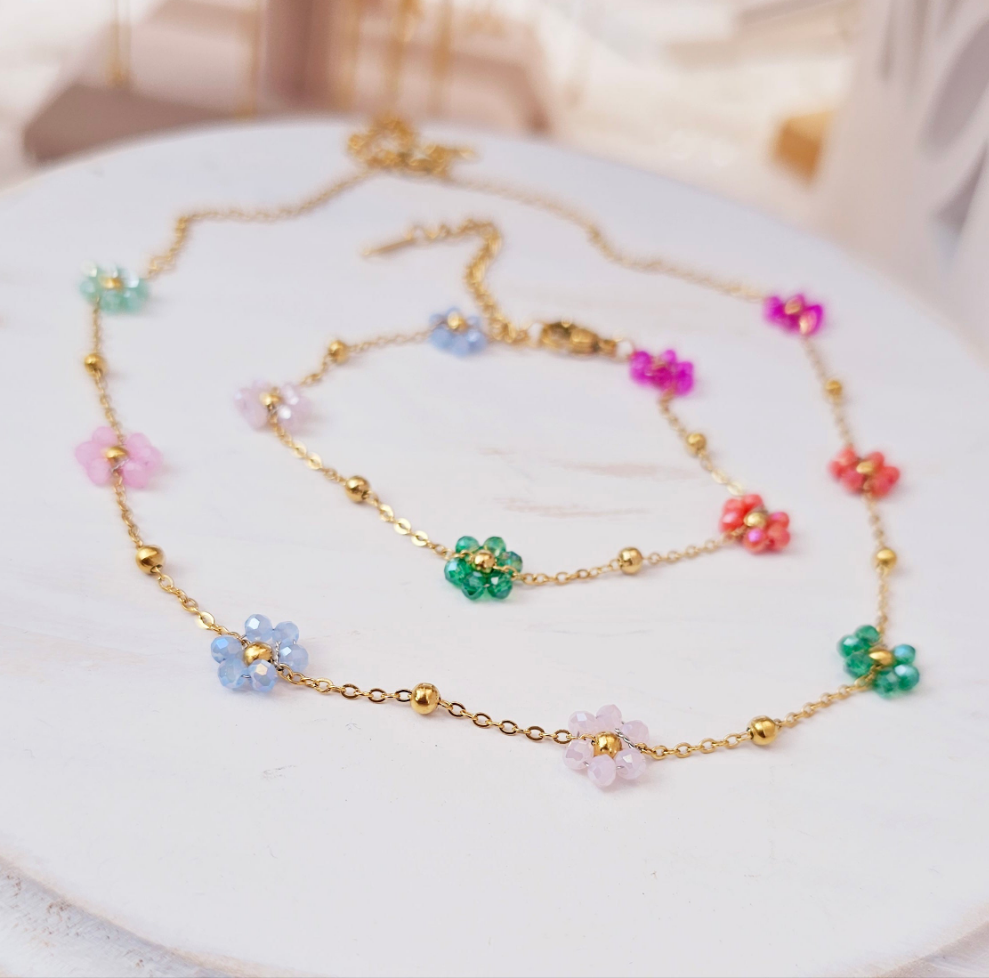 Upgrade your jewelry collection with our Margaritas beaded Set. Handmade with sparkling crystal beads, this set includes a collar and bracelet made with durable gold-tone stainless steel. Add a touch of elegance to any outfit with this stunning set.